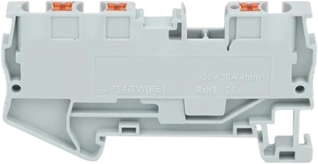 Wire TerminalsTechnical ParametersType No.DetailsAccessoriesPT-4-TW800V/32A0.2-6mm²/0.25-4mm²L66.5/H36.5/W6.2 mmEnd cover:D-PT4-TWPlug-in bridge:FBS2-6 , FBS3-6, FBS4-6, FBS5-6, FBS10-6Insertion bridge:NONEMarker strip:ZB6Model NumberPT 4-TWColorGrey, BlueLength/Wide/Height(mm)L66.5/H36.5/W6.2 mmConnection methodPush-in connectionMaterialNylon PA66Rated Voltage/Current800V/32ACross section, solid/soft Cable0.2-6mm²/0.25-4mm²Conductor Size20-10 AWGMounting TypeNS 35/7.5StandardIEC 60947-7-1