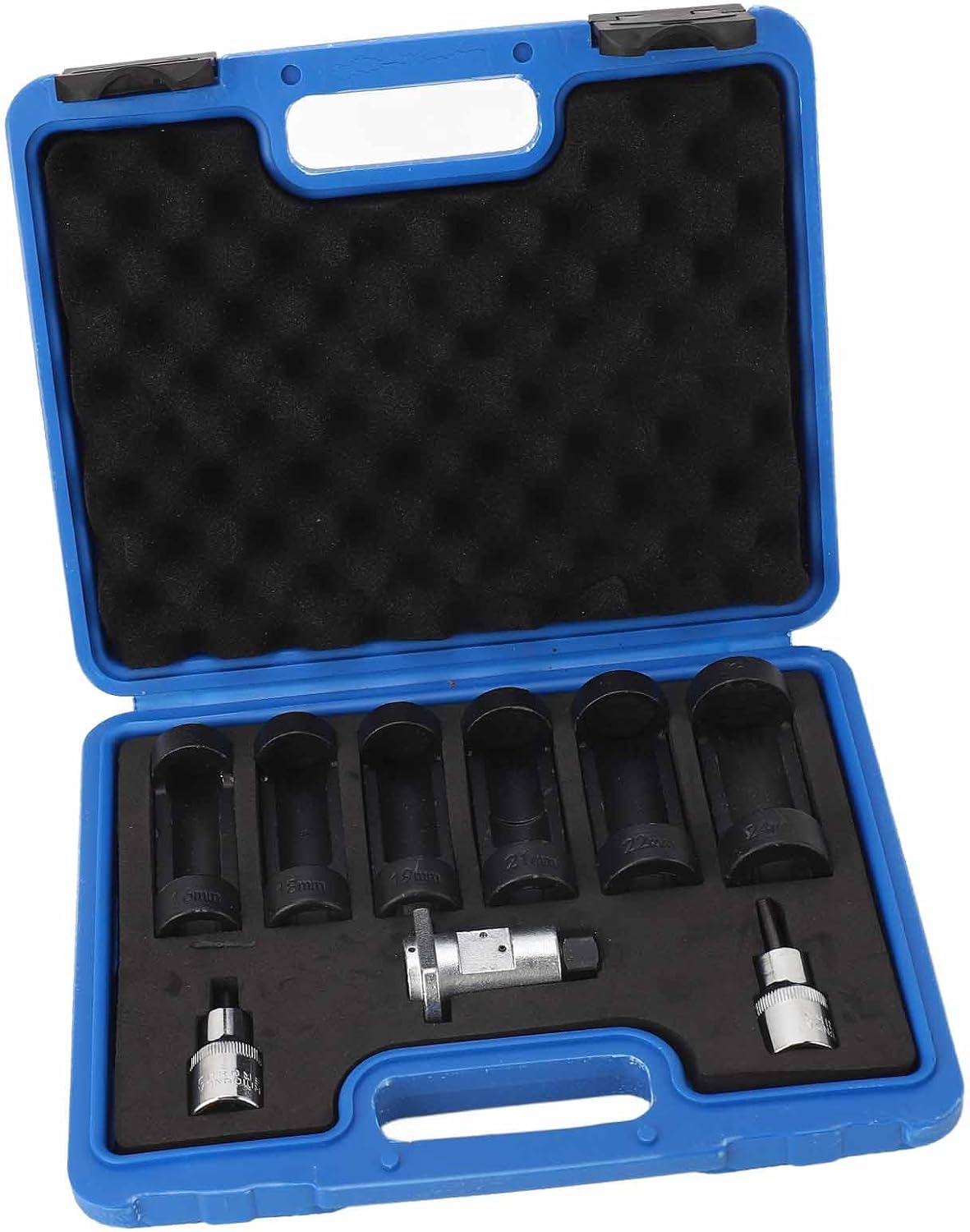 1. 6Pcs Sockets: The set includes 6pcs sockets, 16mm, 18mm, 19mm, 21mm, 22mm, and 24mm. This versatile combination provides a wider range of applications and versatility. 2. High Strength Material: The wrench is made from high strength metal material, ensuring excellent wear resistance. This guarantees the stability and reliability of long term use. 3. 12 Point Design: The 12 point wrench offers better gripping power and even distribution of torsion. This reduces the risk of wrench slippage and ensures secure tightening of the strut nut. 4. Convenient and Time Saving: The strut nut removal tool allows you to easily switch between sizes without the need for multiple tools, increasing efficiency and productivity. 5. Durable and Long Lasting: Designed with durability in mind, the socket set can withstand the rigors of heavy usage. The robust construction ensure that the wrenches have a long lifespan. Specification: Item Type: Strut Nut Socket Material: Metal Socket Size: 16mm 18mm 19mm 21mm 22mm 24mm Length: Approx. 81mm / 3.12in Application: Universal for cars PackageList: 1 x Strut Nut Socket Set (9pcs) 1 x Blow Box