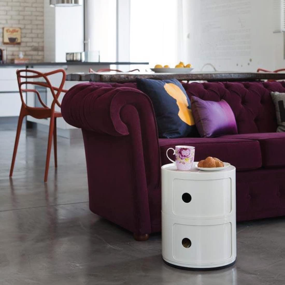 Componibili elements were designed to meet the many uses and lifestyles of any room in the home: in the bathroom, bedroom, kitchen, living room or hallway. The design feature that brings the Componibili modular system to life is the simple and robust vertical overlapping of the single pieces, which, by way of a simple joint, form practical movable containers. Offered in round and square shapes, the Componibili modules can rest on small castors. Flexible, functional and practical, Componibili modules have been in production for more than forty years and have received much recognition for their pre-eminent and innovative design (even displayed at the Museum of Modern Art in New York, and at the Center George Pompidou in Paris. The best-known 32-cm two- or three-drawer compositions are available in solid red, white, black and matte silver. Plus, there are new metallic gold, silver and copper finishes, too.